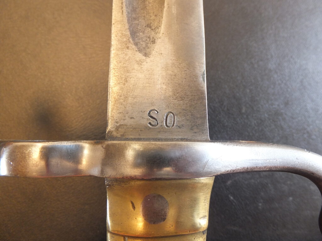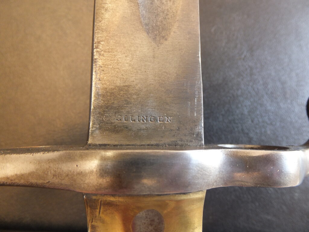 Baïonnette M1843 Würtemberg, fabricant Gebrüder Weyersberg Solingen. num »ro G 336, marquage régiemntaire 3.8.3. Baïonnette curieusement entièrement chromée.