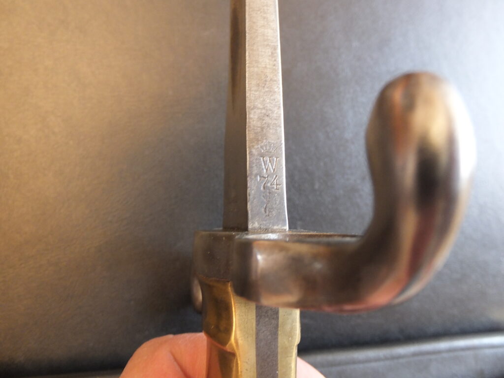 Baïonnette S. 1871/84 pans creux courts a.A., fabriquée par Alex Coppel W88. Marquage G.L.4.(Garnisonlazarett 4)