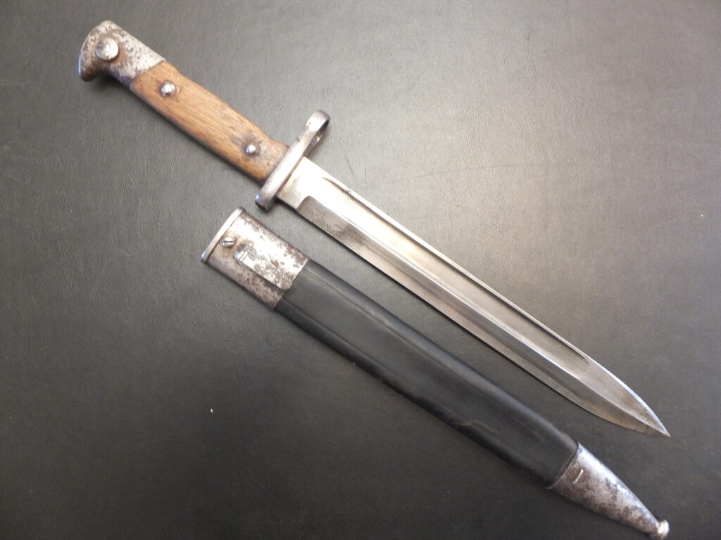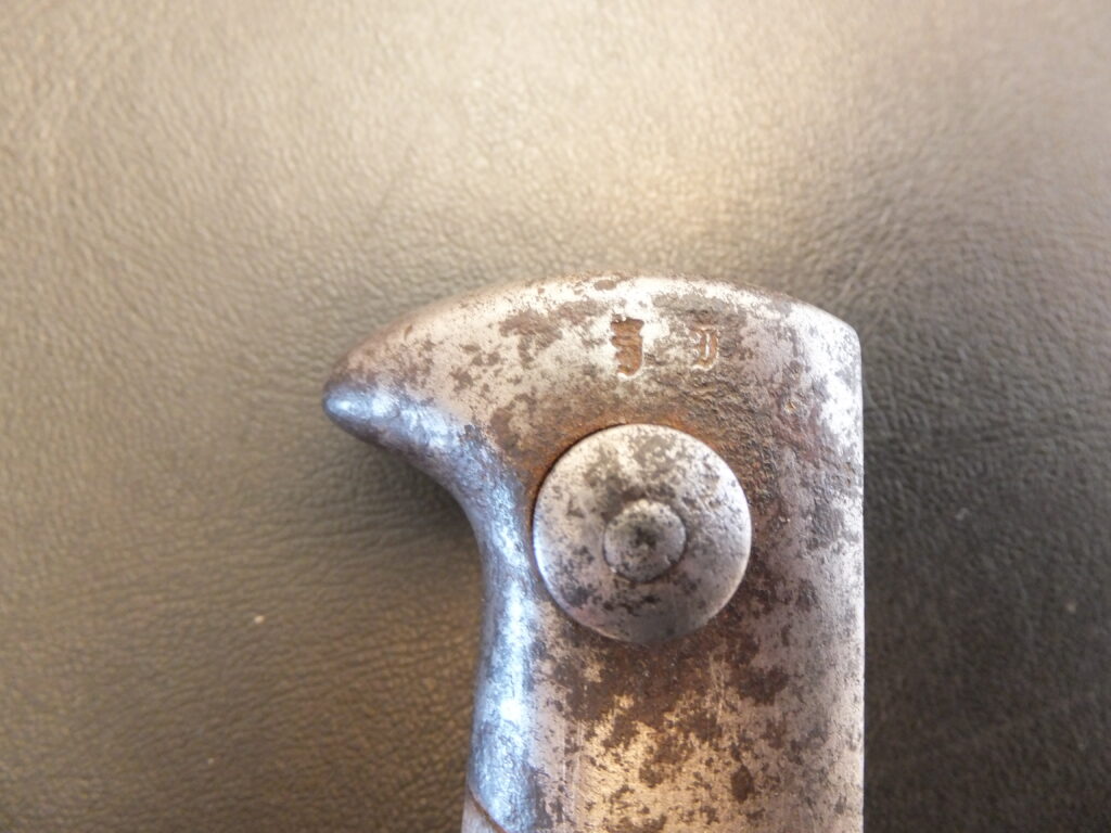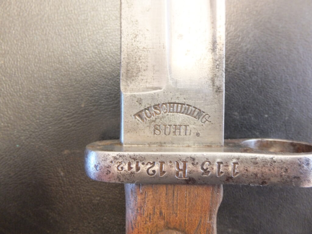 Baïonnette S.71/84 pans creux courts a.A. modifiée par suppression de la bague. Fabricant Simson & Suhl L 88 Marquage B.1. R.J.2. 234 (Bayerisches Reserve -Jäger-Batailon , Kompanie 2 Arme 234)