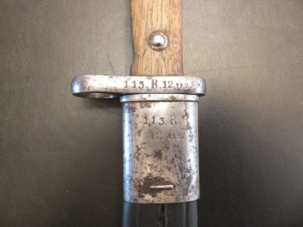 Baïonnette S. 71/84 mS Fabricant Soemmerda L91, Marquage B.8. R.3.153. (Bayerisches Reserve-Infanterie-Regiment 8, Kompanie 3 arme 153)