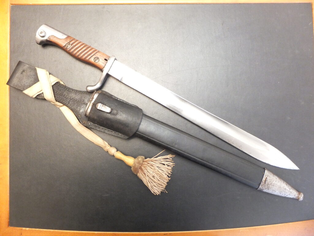 Baïonnette S. 98/05 n.A. fabricant Deutsche Maschinenfabrik A.G. Duisburg réutilisée par la Yougoslavie marquage 52320 M246