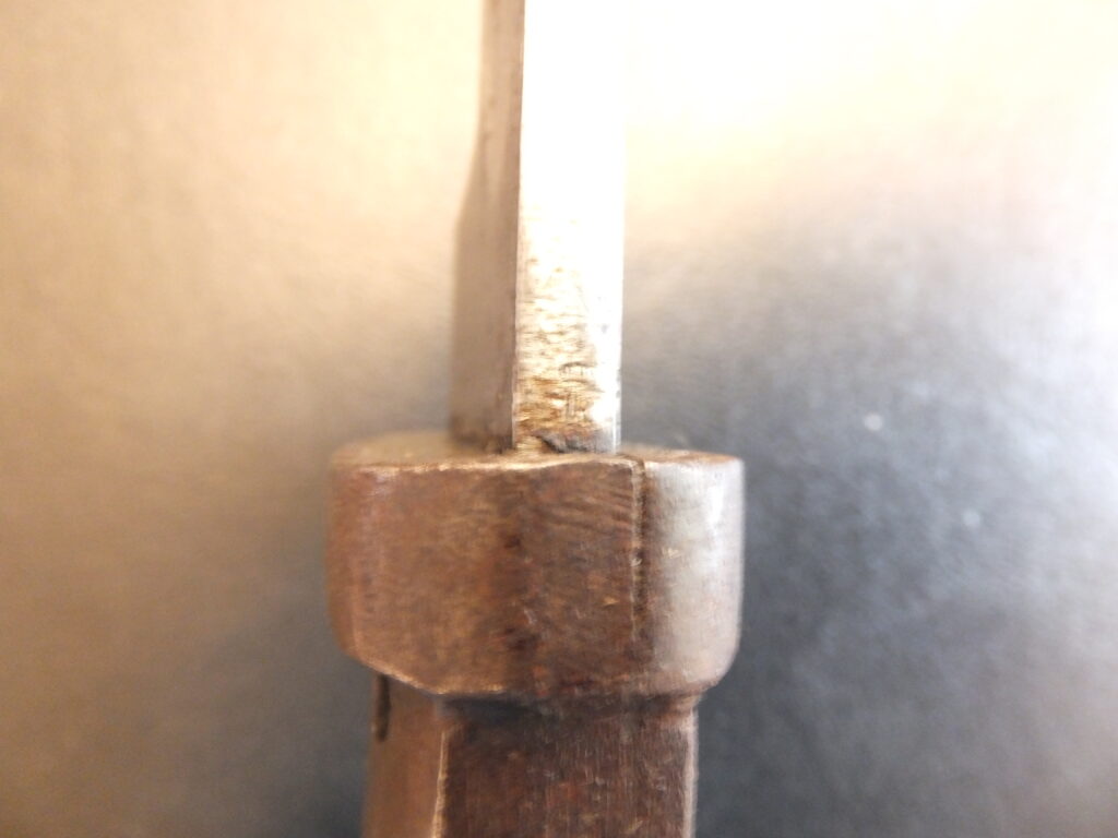 Baïonnette Ersatz à partir d’une baïonnette anglaise M1853 par modification de la poignée. Selon ROy Williams, il s’agirait d’une arme de côté.