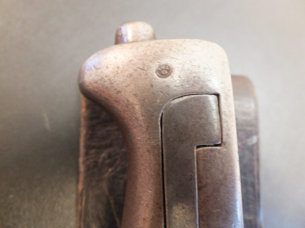 Comme indiqué plus haut, les transformations externes de la poignée sont en réalité beaucoup plus importantes que ce qu’il n’y parait. Le pommeau est percé au talon pour permettre le passage de l’extrémité de la soie, il est prolongé au dos et du côté opposé par deux branches métalliques de 8mm d’épaisseur qui forment, à l’avant, une fourche à l’intérieur de laquelle vient se loger la soie. Cette dernière n’occupe pas tout l’espace ainsi ménagé et se termine par une tige filetée destinée à recevoir l’écrou au talon du pommeau. Une fois les plaquettes en place, ce sont les deux branches décrites qui apparaissent entre elles. Apparue en 1879, cette version voit également les plaquettes en corne replacées par des plaquettes en ébonite ou en bakélite. Le démontage rend cette arme réparable et semble plus résistante que sa devancière.